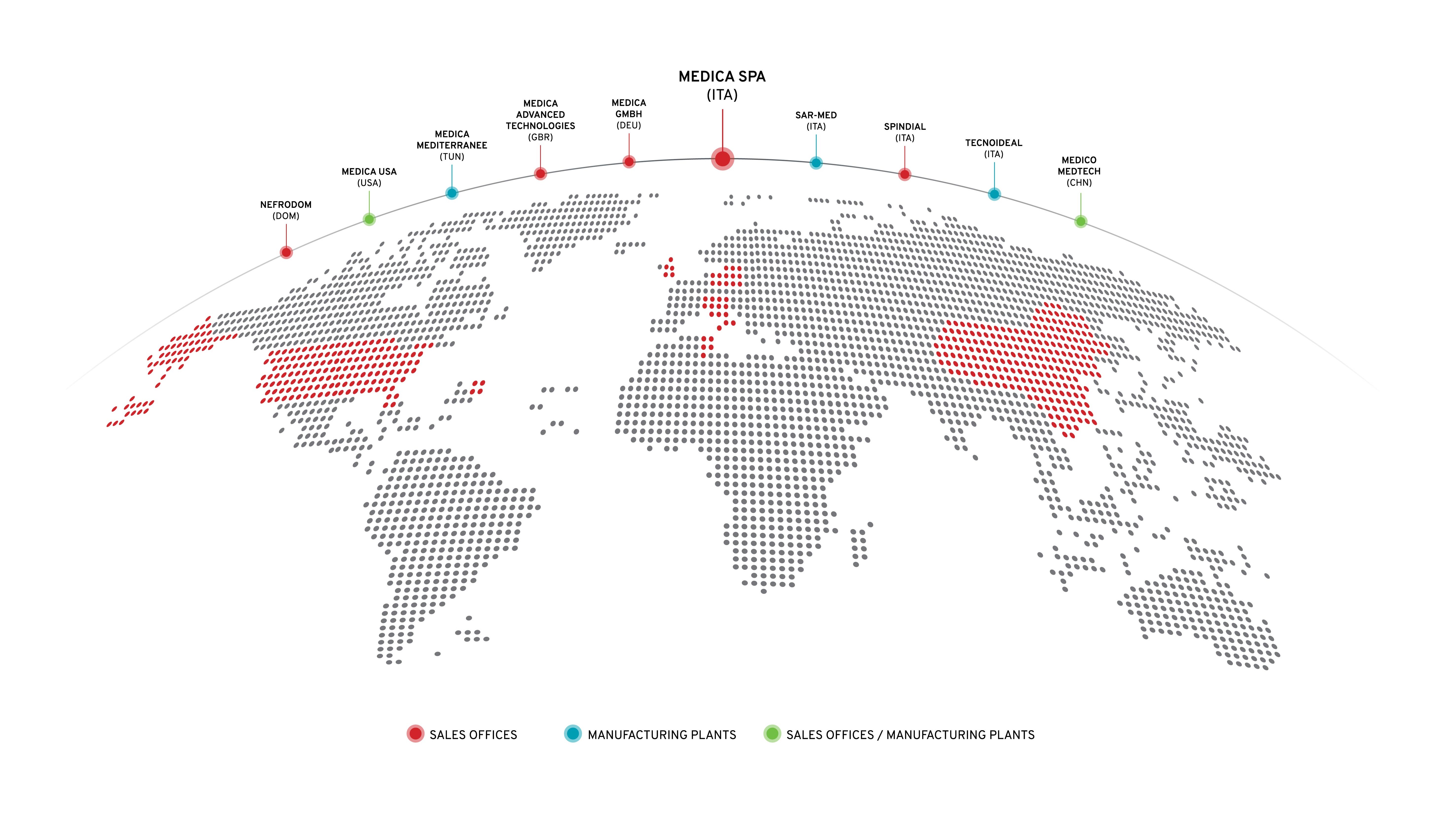 MEDICA progetta e produce una gamma completa di membrane in polisulfone, filtri per dialisi, emofiltri, linee di sangue per dialisi, linee di infusione, filtri per l'acqua per la purificazione microbiologica. Inoltre, MEDICA produce macchine per reparti di terapia intensiva, dipartimenti di cardiologia e oncologia.